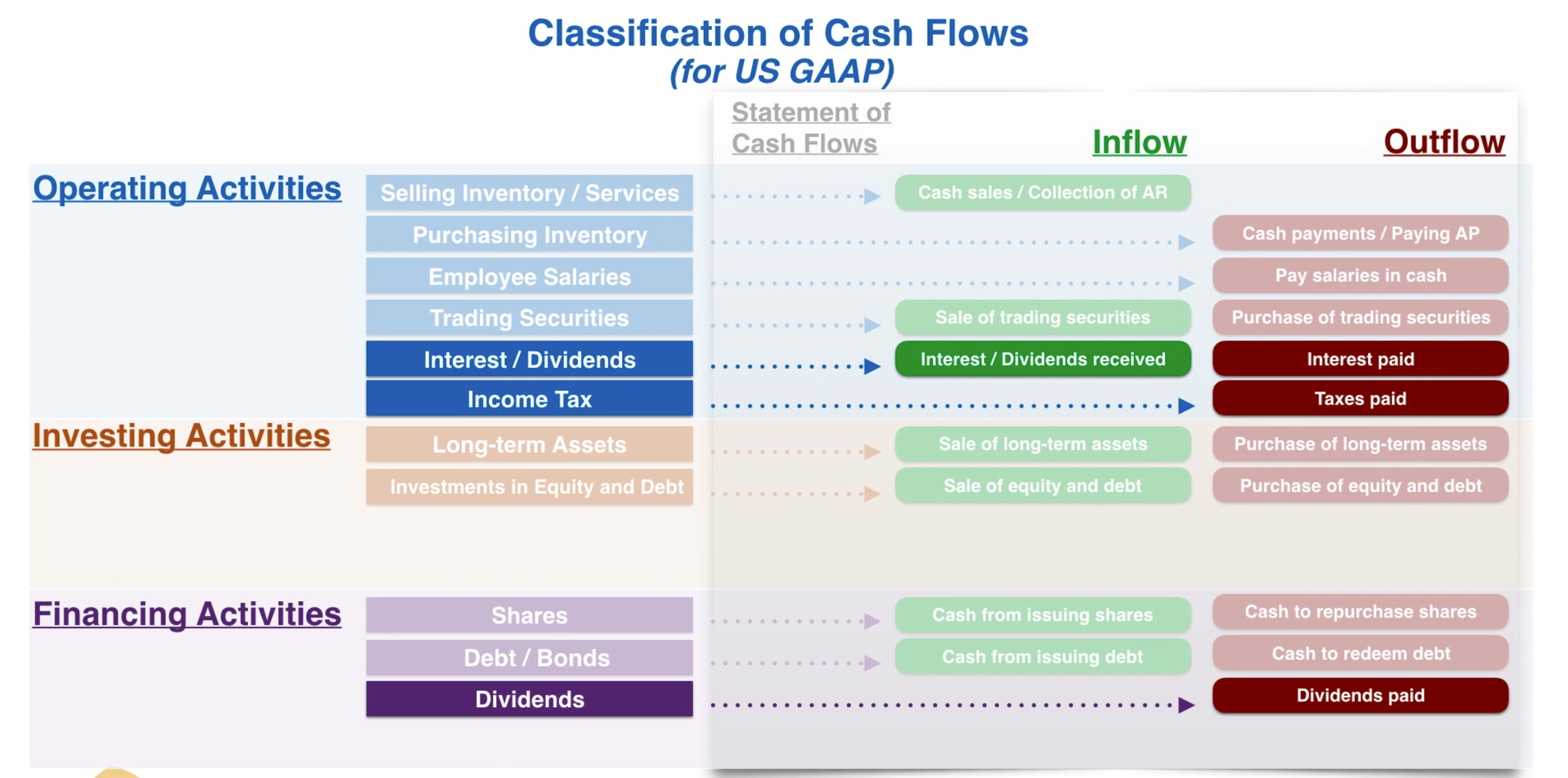 cashflow includes inflow (receive cash) and outflow (payment of cash)